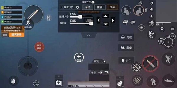然后把做左开火键尽量的调的大一点,因为这里也不需要放其他的按键,也不会遮挡视野,放大一点也可以避免我们需要按的时候没有按到。然后把左右探头键放到小地图的左边,也尽量调的稍微大一点,跟开火键同理。然后开镜键放到如图中的位置,同理也是放的稍微大一点。