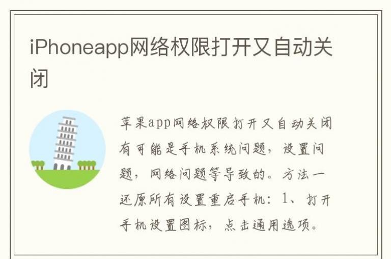 以iPhone13 pro为例,iPhoneapp网络权限打开又主动紧闭有可能是手机系统问题,配置问题,网络问题等以致的。个中全文包蕴三种方式,分袂还原全部配置重启手机,系统更新和开放APPWLAN与蜂窝网络。以还原全部配置重启手机切实其实措施如下: