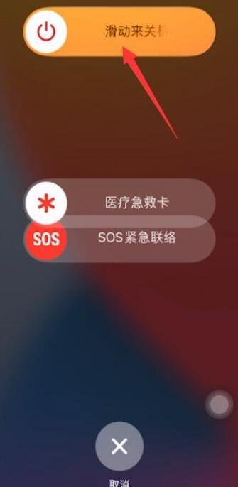 弹出界面,拖动滑块举行关机,长按电源键便可开机。