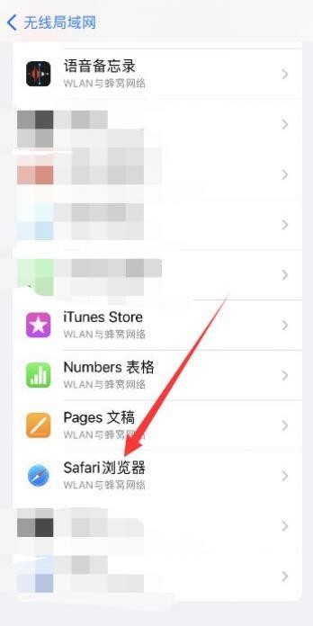 点击Safari浏览器,进来页面后,勾选WLAN与蜂窝网络便可。