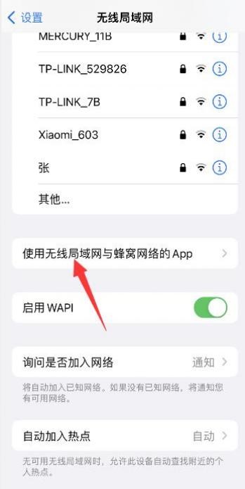 加入页面,点击运用无线局域网与蜂窝网络的APP。