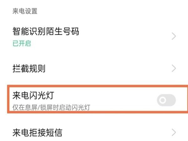 - 开启来电闪光灯右侧的开关便可。