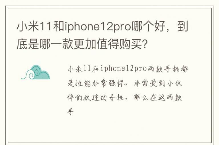 小米11和iphone12pro两款手机都是功能十分刁悍,十分受到小伙伴们欢迎的手机,那么在这两款手机中到底是哪一款加倍值得小伙伴们入手呢?下面就有小编来为大伙先容一下吧。