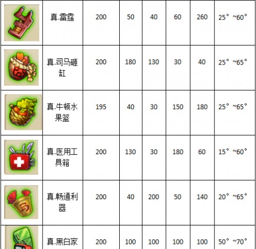 目下游戏中多见的真武器有:真.碎石斧、真.硬弩弓、真.AK48、真.司马砸缸、真.轰天、真.医用工具箱、真.雷霆、真.猛火、真.曲直短长家电、真.牛顿瓜果篮、真.通畅利器、真.神风。