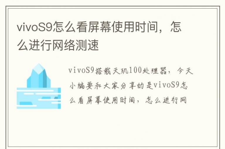 vivoS9搭载天玑100处理器,今日小编要和大伙分享的是vivoS9怎样看屏幕运用时光,怎样进行网络测速,一起来看看