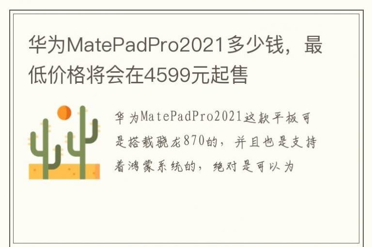 华为MatePadPro2021多少钱,最低价格将会在4599元起售