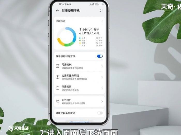 1、张开手机配置,下滑菜单栏抉择健康运用手机选项。