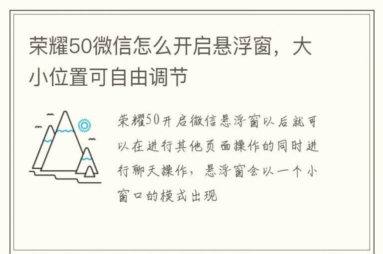 荣耀50微信怎么开启悬浮窗,大小位置可自由调节