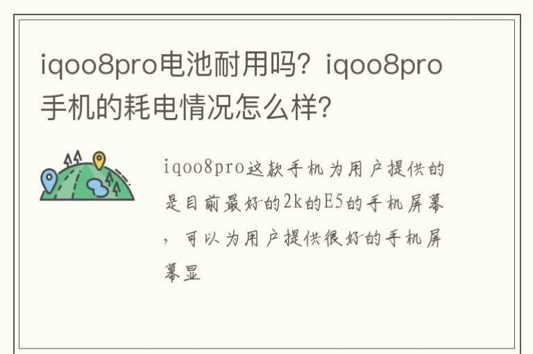 iqoo8pro电池耐用吗?iqoo8pro手机的耗电情况怎么样?