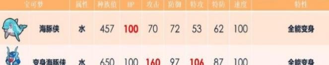 解析:变身后的海豚侠有着这座排名靠前的种族值,袭击特别强力。