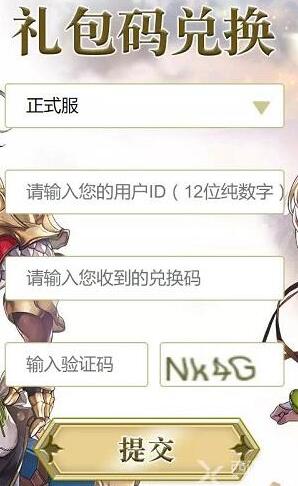 2、进入官网之后,我们需要在兑换界面输入用户ID、兑换码和验证码这些内容,然后点击提交;