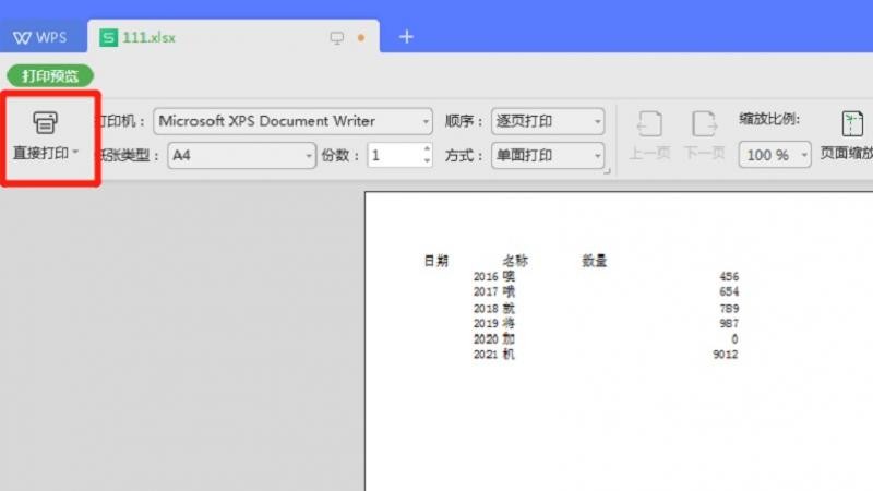 封闭调整达成后,点击左上角的干脆打印便可。