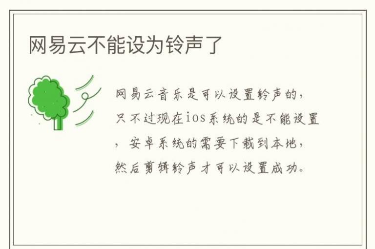 网易云音乐是能够配置铃声的,只不过而今ios体系的是不能配置,安卓体系的需求下载到当地而后剪辑铃声才能够配置告成。配置方式如下: