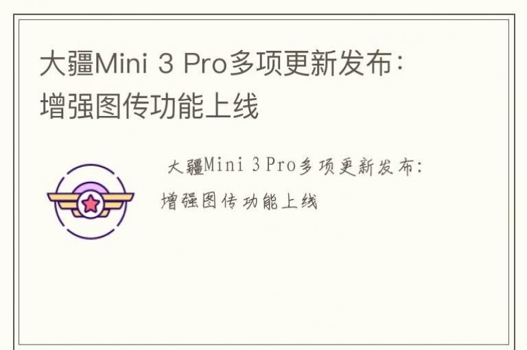 大疆Mini 3 Pro多项更新发布:增强图传功能上线