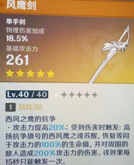 原神风鹰剑满级属性介绍
