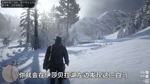 2、之后来到伊莎贝拉湖左边找到此白马(注意在路上不要开枪,否则会惊吓白马)。