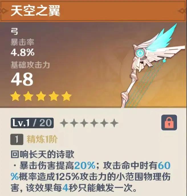 原神天空之翼满级属性是多少级