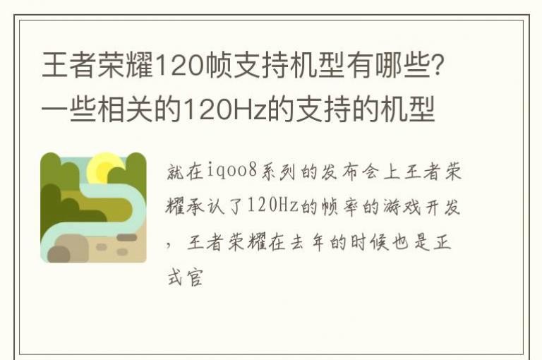 王者荣耀120帧支持机型有哪些?一些相关的120Hz的支持的机型