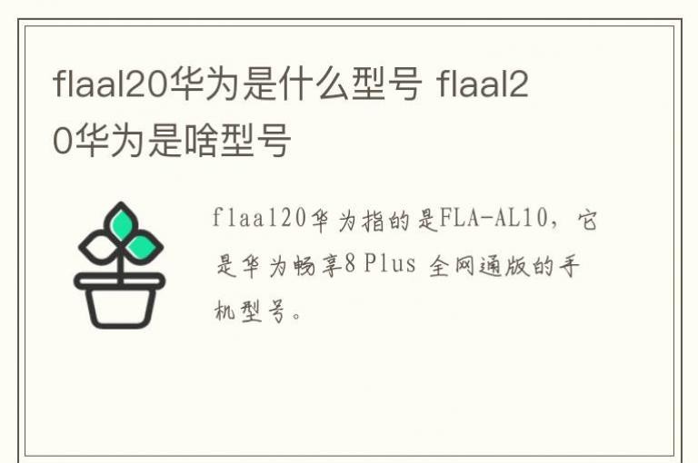 flaal20华为指的是FLA-AL10,它是华为畅享8 Plus 全网通版的手机型号。