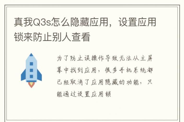 真我Q3s怎么隐藏应用,设置应用锁来防止别人查看