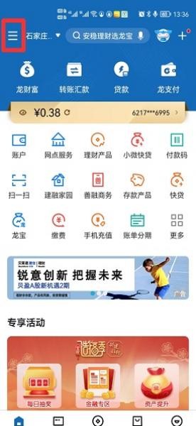 在中国建设银行中,点击左上角三条杠。