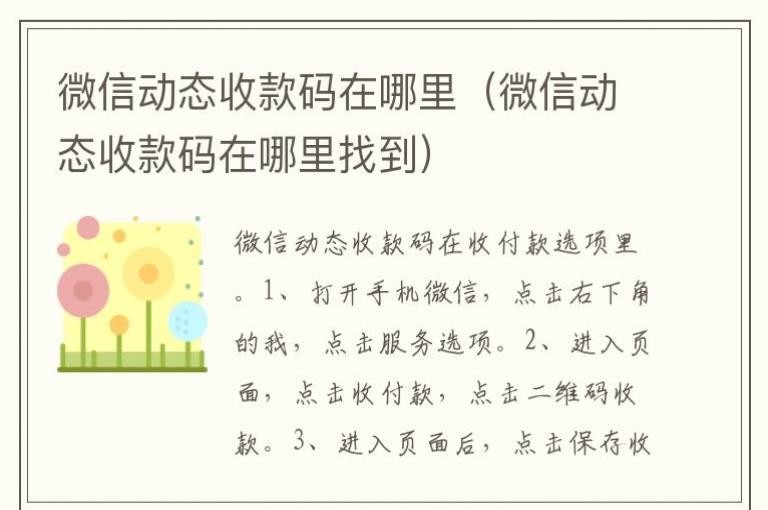 微信动态收款码在哪里-微信动态收款码在哪里找到