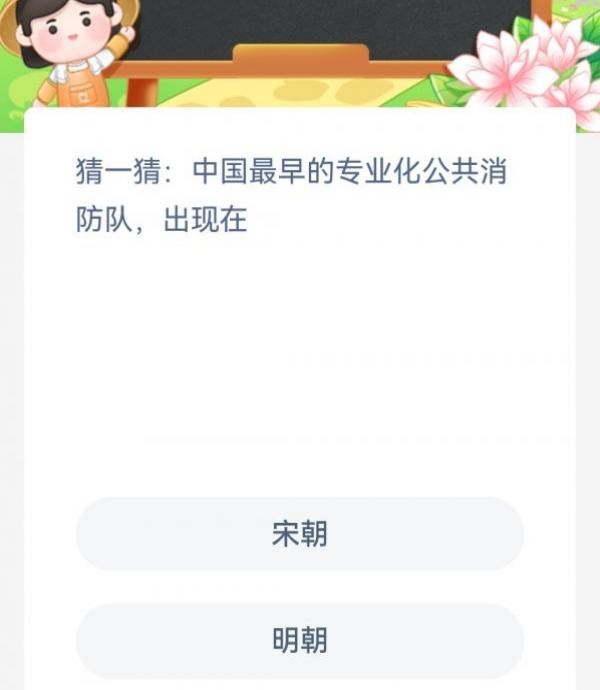 猜一猜中国最先的专业化大众消防队出目下当今,付款宝蚂蚁新村9月16日准确谜底是甚么,可能具有得多小伙伴想知道猜一猜中国最先的专业化大众消防队出目下当今蚂蚁新村的谜底,下面一起来看看9月16日蚂蚁新村猜一猜中国最先的专业化大众消防队出目下当今的谜底吧。