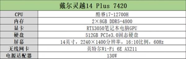 戴尔灵越14 Plus 7420搭载的处理器为酷睿i7-12700H,它是12代酷睿H系列标压处理器的高端型号,6+8中心、20线程策划,功能核睿频高达4.7GHz,TDP为45W。高功能混杂架构可以均衡功能与能耗,带来全新的移动办公尝试。