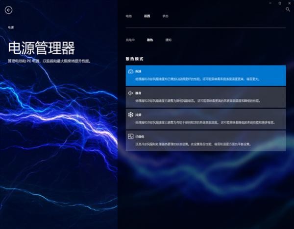 在功率界面下,能够对电池、散热模式等方面进行配置。