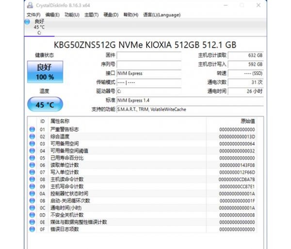 戴尔笔记本对比喜好运用东芝(铠侠)的固态硬盘。这款灵越14 Plus 7420接纳的便是一款铠侠的512GB固态硬盘。