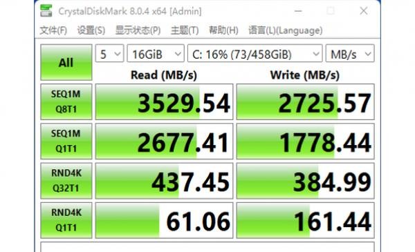 议决CrystalDiskMark这款测试软件的成绩来看,这块SSD的功能对比不错,有着超出3500MB/s的次序读取速率,超出2700MB/s的次序写入速率。