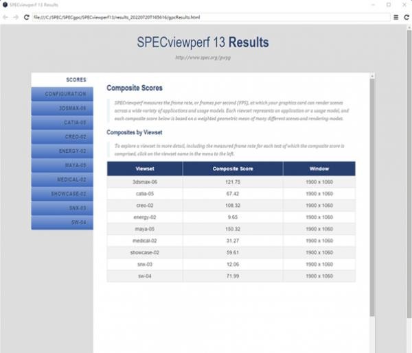 从SPECviewperf 13的成绩,RTX3050笔记本电脑GPU在3dsmax-06、creo-02、maya-05这些产业建模app之中都有着较好的显示。