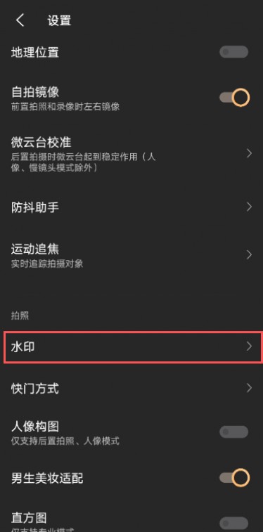- 封闭 时光水印 和 机型水印 右侧的开关便可。