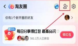 在淘友圈界面中,点击右上角的加老友玩淘友圈。