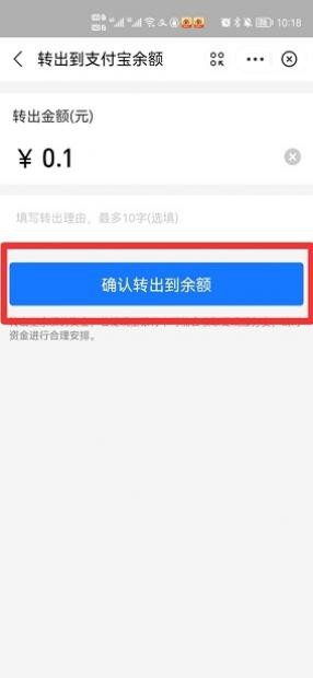 在张开的界面中,点击确认转出到余额便可。