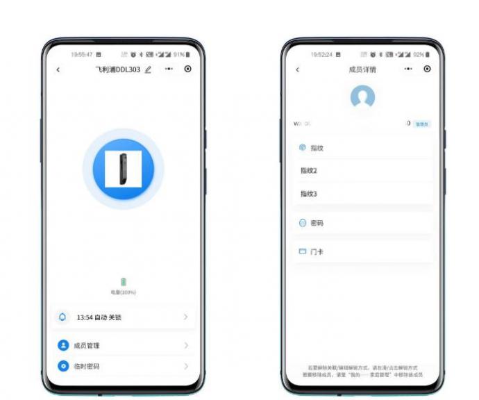 不用占用手机空间安装APP,Philips EasyKey小法度模范就能够兑现智能化的治理,小法度模范界面出格简略,能够表现智能锁的电量新闻,对家庭成员的指纹等解锁体例举行相干治理。