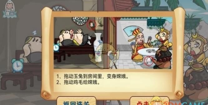 - 嫦娥就会使用鸡毛把猪八戒喊醒,获胜过关。