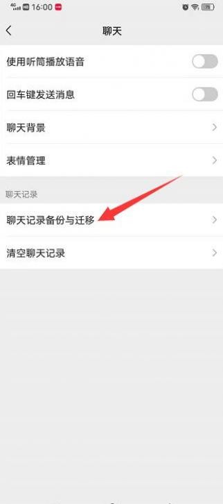 点击闲聊,抉择闲聊记实备份与迁徙,抉择迁徙闲聊记实到另一台装备。