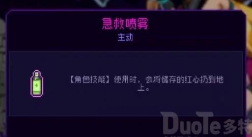 能够保存红心,最多保存7个(满级)类似于端游的哨兵这把武器的技能,它能灵验的保存过剩的红心做到不花消资本。能够为接下来的关卡做十足的准备。