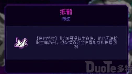 r6堪称是新手的福音,自带激光器武器射速较快,此角色没有红心容器只能得到护盾,但利大于弊~仰仗超强的恢复本领和自带”天眼“这种对萌新极端友情的角色。R-6有一个积极技能和一个被迫技能:
