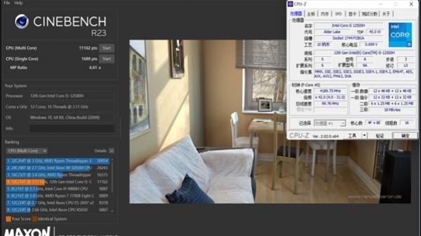 接下来是功能测试,CineBench R15单核246cb,多核2101cb,比35W的i7-12700H快了快要10%。