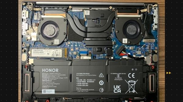 在刁悍的功能背面,荣耀MagicBook V14 2022也含有超卓的散热作支撑。接纳φ8翼形大直径双热管策划,双电扇,转轴出风口策划以及转轴辅助进风口策划,合营上2.62万妹妹散热鳍片和7颗温度传感器精细控温,散热更高效更平衡,可以在高能输出的同时更安静,更“镇静”。