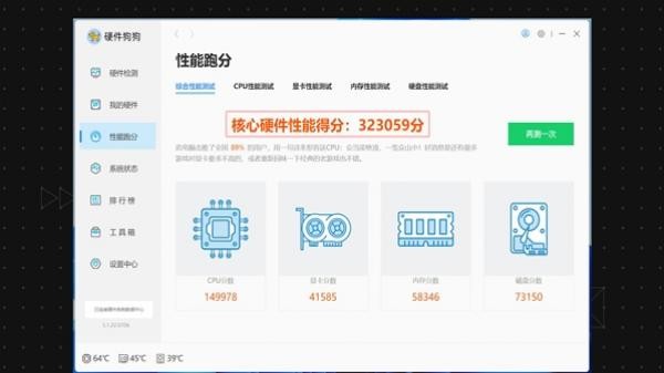 硬件狗狗总分到达了32万分,超出了全国89%的笔记本用户,特别是硬盘分数高达73150,这个分数也能看出三星980Pro有何等刁悍。