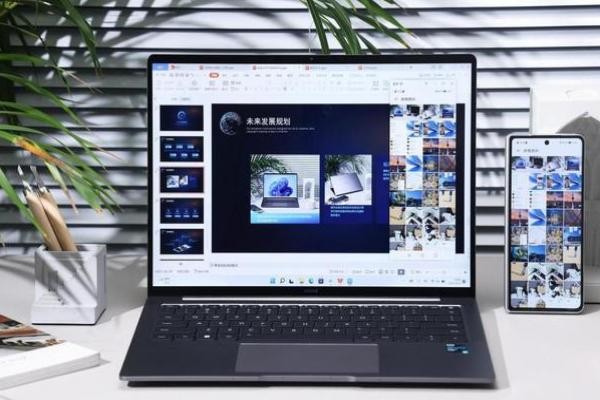 荣耀MagicBook V14 2022与平板协同的作用也迎来了晋级,在镜像模式下,能够干脆用平板作为数位板,修图绘画都很便利。在扩大模式下,平板便是一起副屏,扩大了PC的表现空间。而新增的同享模式,在PC和平板都对应自力的情况下,用电脑的键鼠能够操纵平板中的内容,实现了效力最大化。