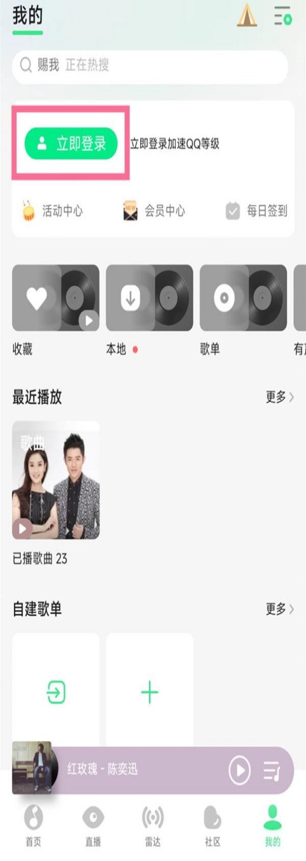 - 开启手机QQ音乐,在“我的”页面点击 马上登录 。