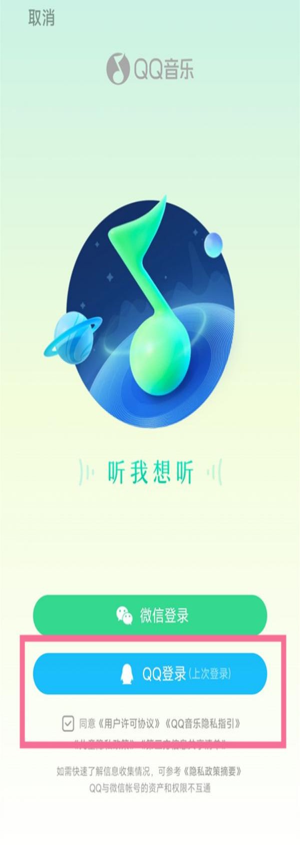 - 选择 QQ登录 并勾选隐衷订定合同。