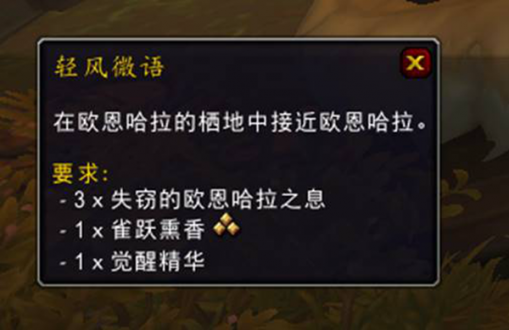 当你拿到3个失窃的欧恩哈拉之息之后再去找戈多罗托,它会给你提供“轻风微语”任务,要求你在欧恩哈拉的栖地接近欧恩哈拉。