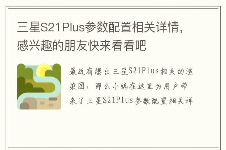 近来有爆出三星S21Plus相关的衬着图,那么小编在这里为用户带来了三星S21Plus参数设置相关概况,好奇的友人快来看看吧。