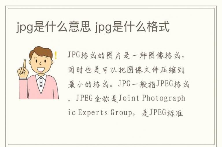 JPG规格的图片是一种图象规格,同时也是能够把图象文件压缩到最小的规格。JPG一般指JPEG规格。JPEG全称是Joint Photographic Experts Group,是JPEG尺度的产物,该尺度由国际尺度化构造(ISO)制定,是面向延续色彩静止图象的一种压缩尺度。 JPEG规格是最常用的图象文件规格,后缀名为.jpg" />