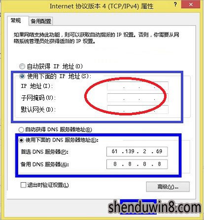 5、可以看到本地IP地址设置界面了,选中“使用下面的IP地址”,然后在DNs地址里边也需要填写DNs地址。